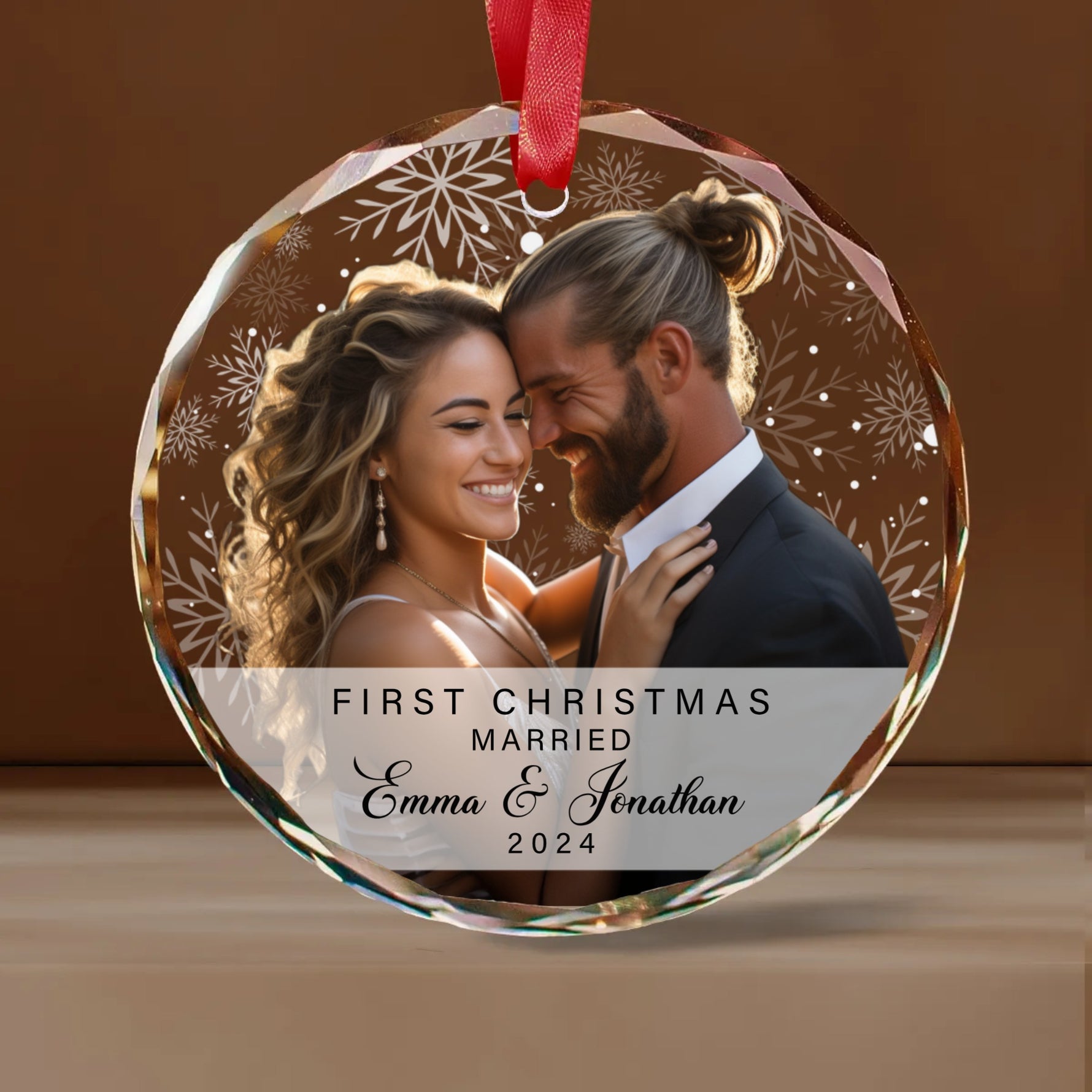 Personalized First Christmas Married Ornament, Custom Photo Ornament, Engagement Gifts